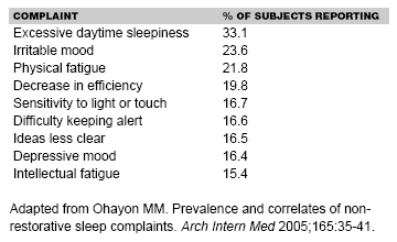 5. Ohayon MM. Prevalence and correlates of nonrestorative sleep complaints. Arch Intern Med 2005;165:35-41.