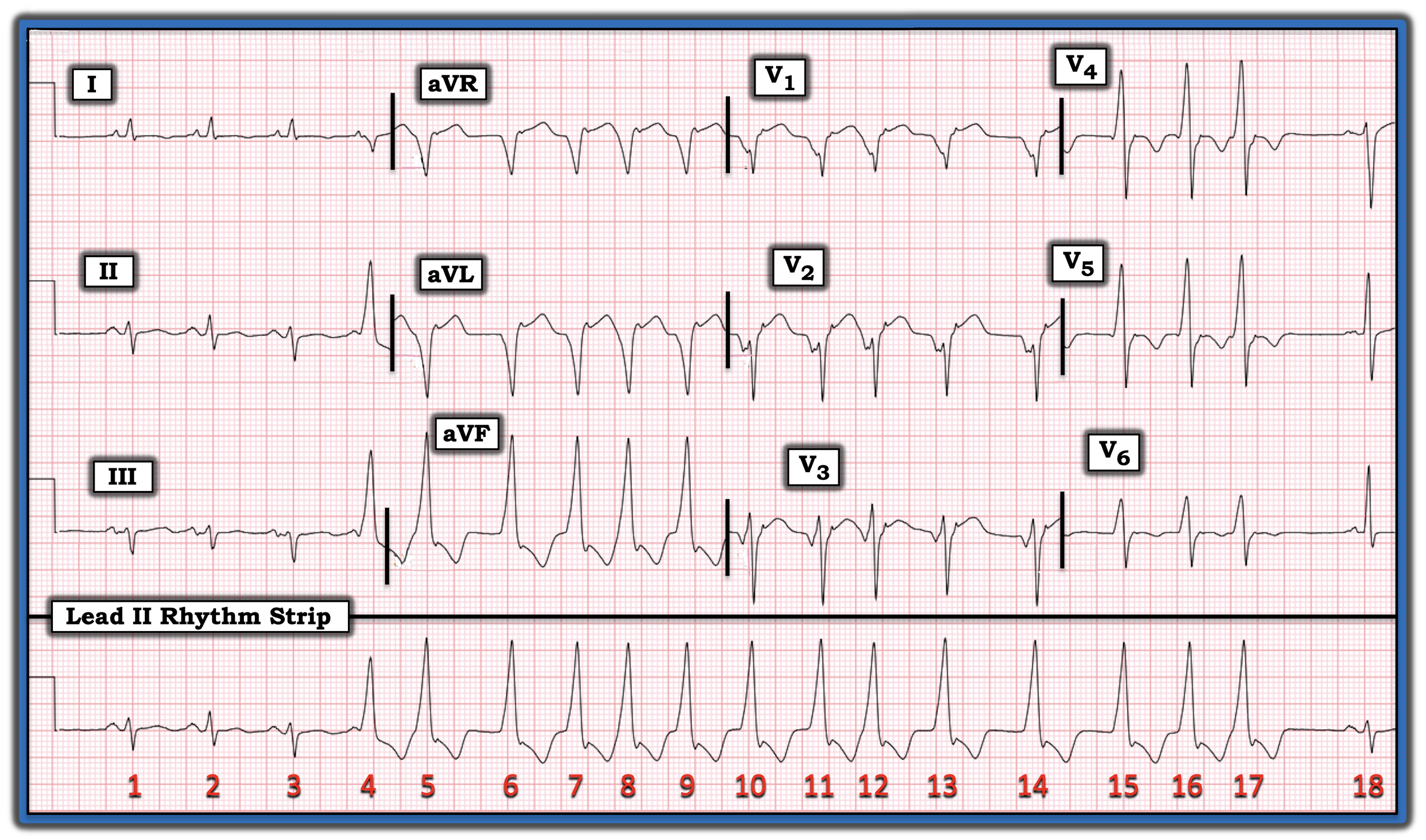 - The final QRS complex in today’s ECG is a narrow, sinus-conducted beat ( = beat #18), but the tracing ends before we see the ST-T wave of this last beat.