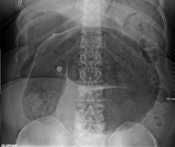 In a study by Alshamari et al, the sensitivity of AXR for determining the diagnosis of acute nontraumatic abdominal pain was only 46%.10 In a study by Driver et al that included patients with suspected constipation who underwent AXR, 55% of the patients with low stool burden were given the final diagnosis of constipation and 45% were treated for constipation in the ED. For patients with moderate or greater stool burden, 42% received no treatment in the ED, 38% were given no medications at discharge for the treatment of constipation, and 28% were given an alternative diagnosis.11 Thus, plain films have no role in confirming the diagnosis of constipation. The history and physical exam should be able to lead to this diagnosis, and if there is concern for additional pathology, more advanced imaging will need to be obtained to determine the cause.12