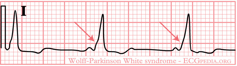 - a “delta wave,” which is a slurring and slow rise of the initial QRS complex;