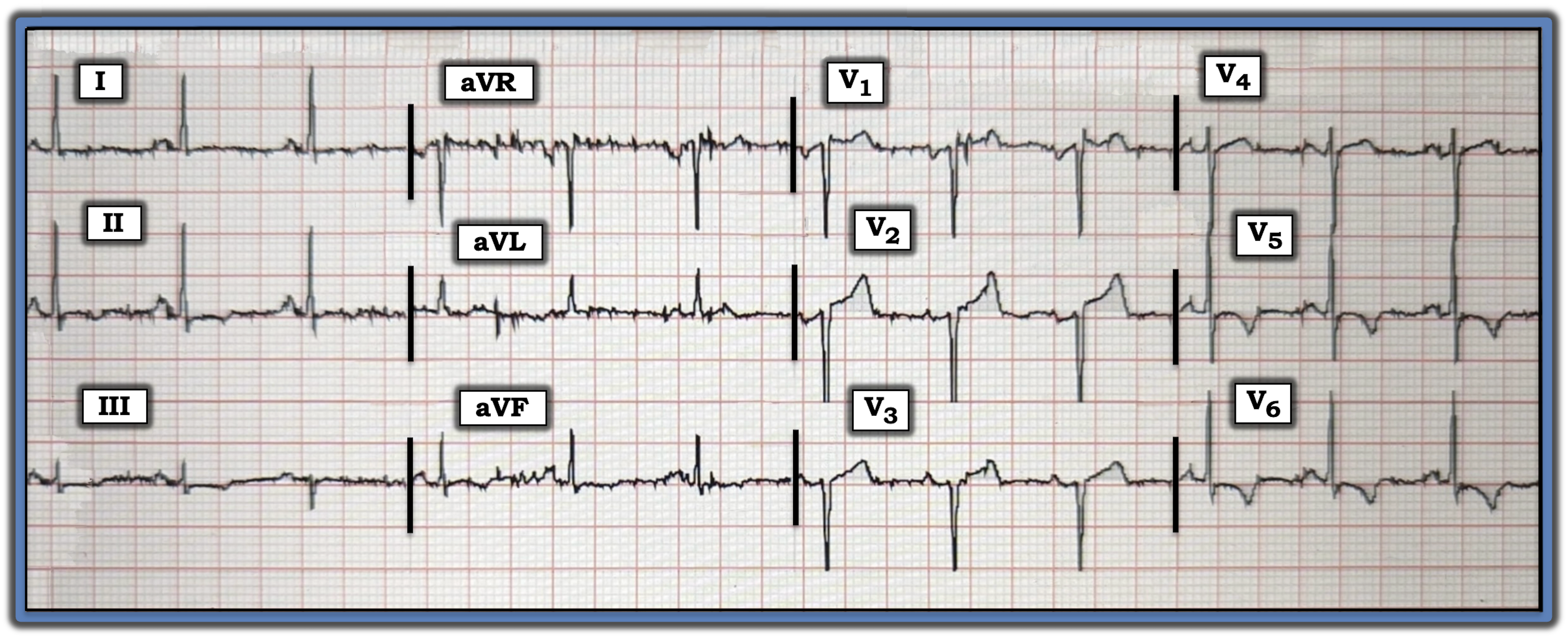- ST-T wave changes of LV “strain” typically manifest as ST-T wave depression in one or more of the lateral leads (consistent with the ST-T wave picture that we see in leads V5 and V6 of today’s tracing).