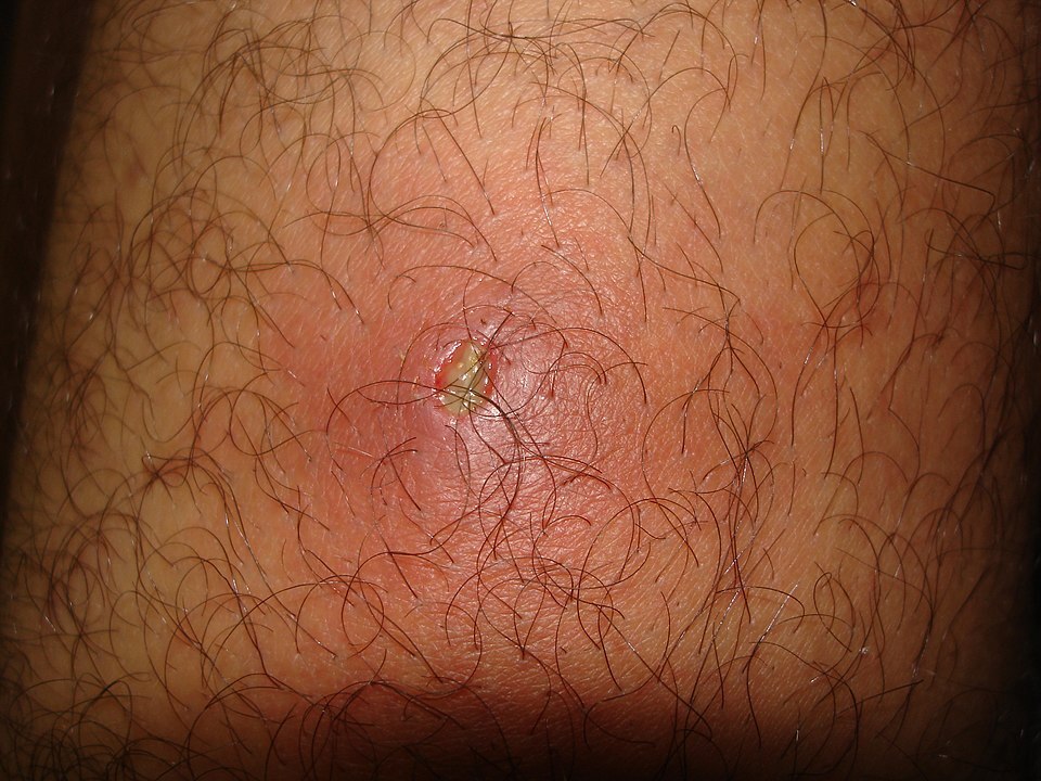 Source: Mahdouch. [Example of a boil.] Published March 8, 2013. https://en.wikipedia.org/wiki/Boil#/media/File:Furoncle.jpg. CC-BY-1.0 |