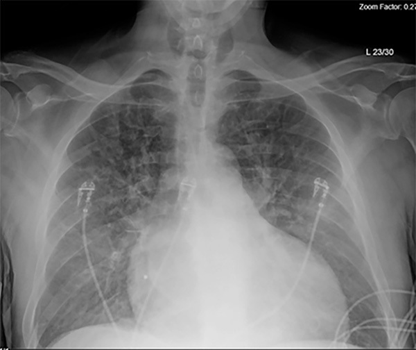 Although pulmonary edema is seen in only about 15% of those presenting with acute HF, severe pulmonary edema is present in less than 3% of these patients.27 When the clinical presentation includes pulmonary edema, it may appear very similar to hypertensive acute HF. Patients with ADHF typically have known left ventricular dysfunction at baseline, and severe hypertension may not be present on arrival.27 Most patients with ADHF will not demonstrate evidence of hypoperfusion. Classically, patients with ADHF present “warm and wet.”11