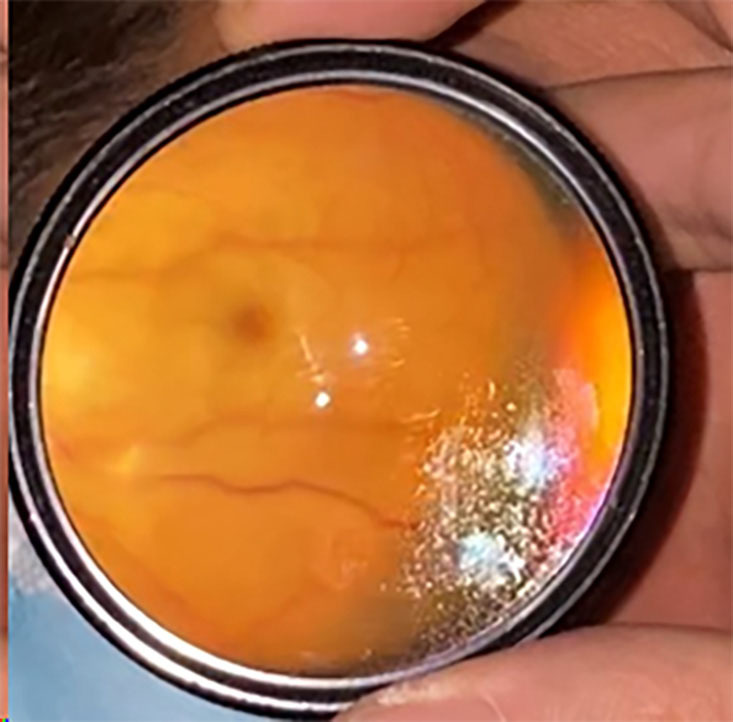 Figure 4. Retrobulbar Spot Sign Consistent with Central Retinal Artery Occlusion |