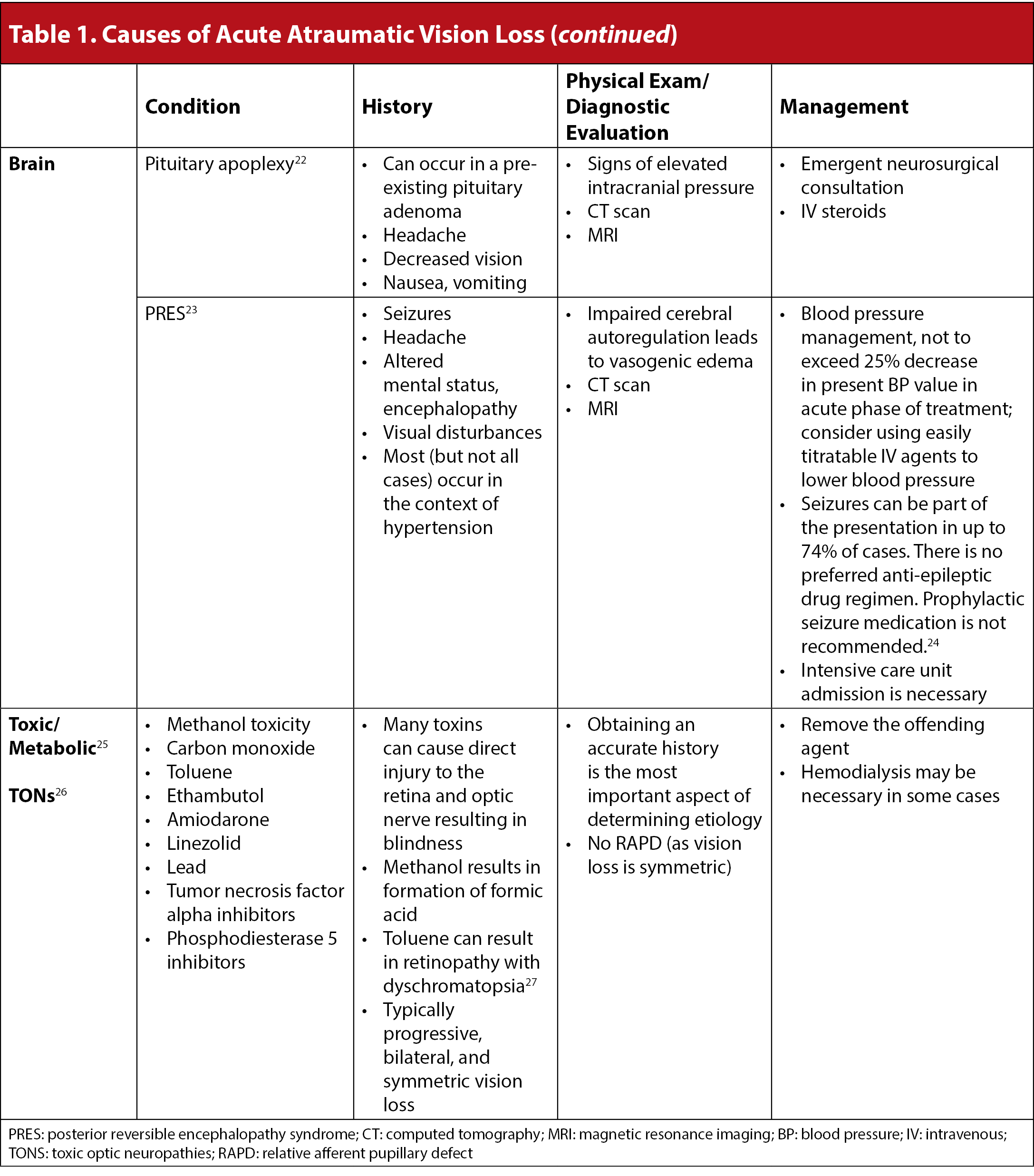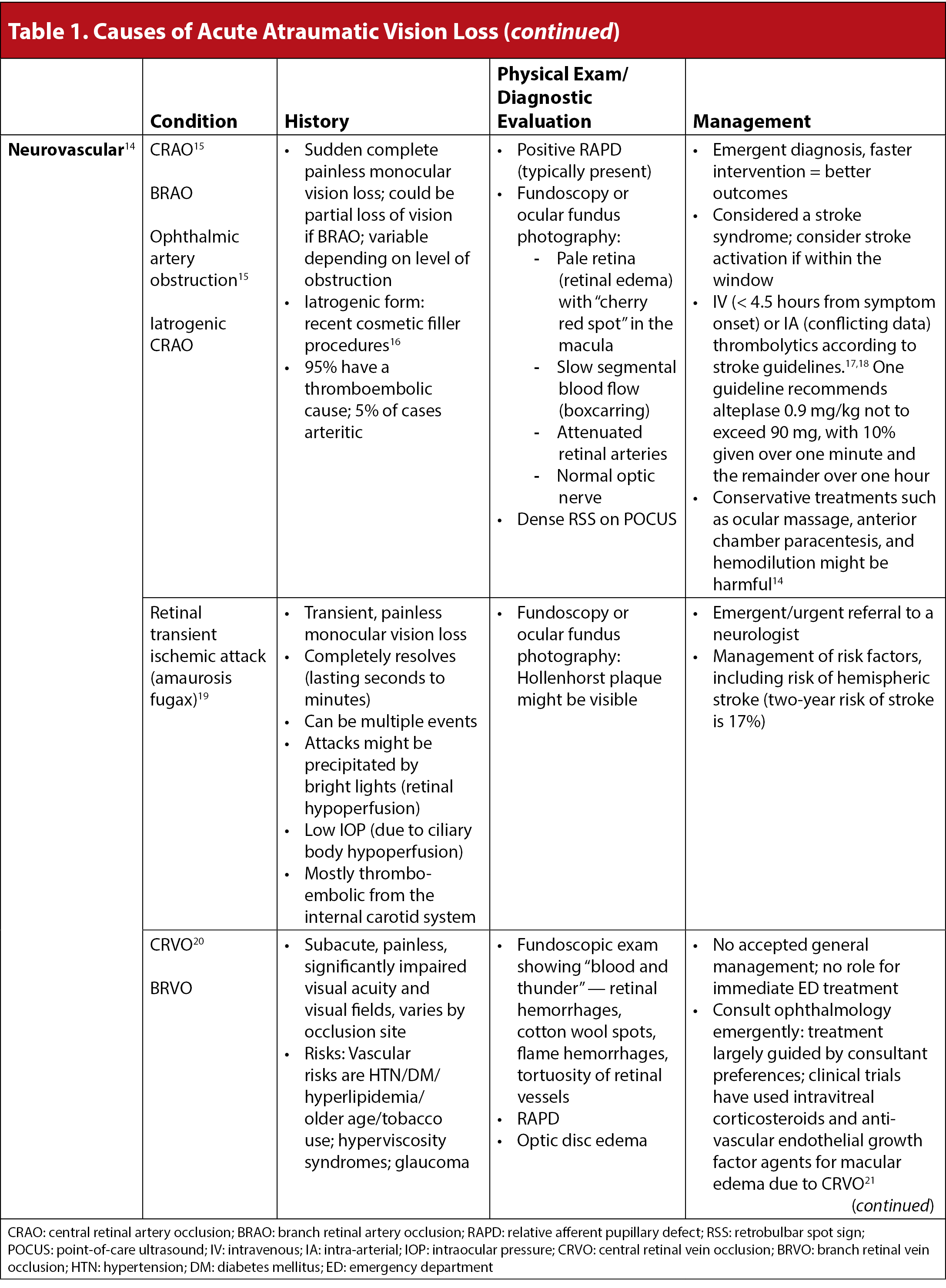 ‘Doc, I Can’t See’: The Emergency Medicine Approach to Acute Atraumatic Vision Loss