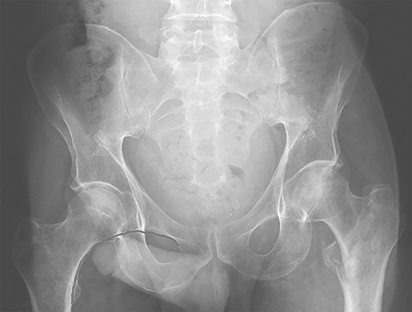 Figure 1. Left Intertrochanteric Fracture with Shenton Line Demonstrated on the Right Side |