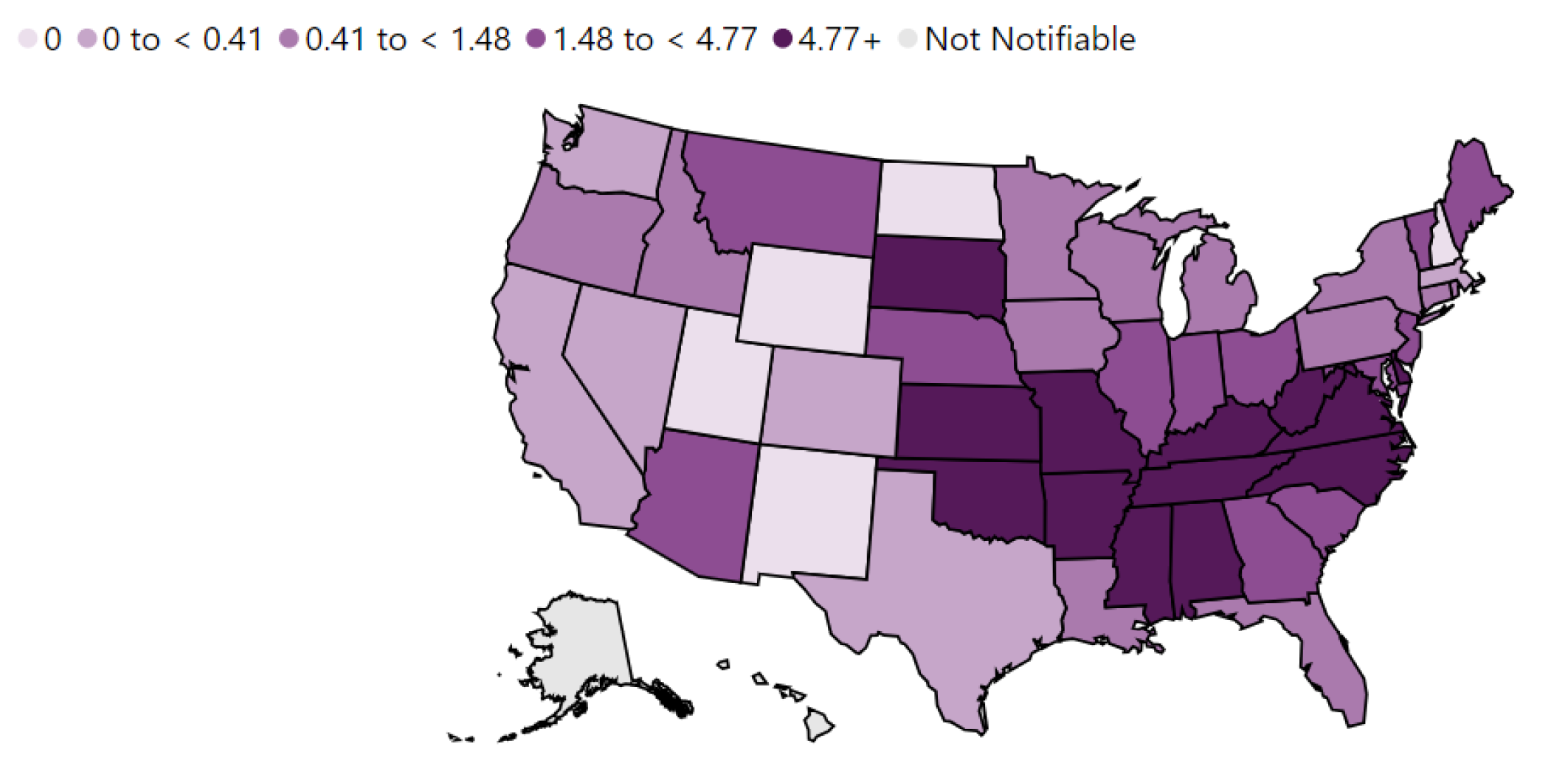 Figure 4. Annual U.S. Incidence of Reported Spotted Fever Rickettsiosis for 2021 |