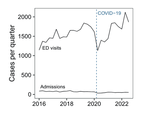 Figure 1. Trends in Pediatric Emergency Department (ED) Visits and Hospitalizations for Anaphylaxis from 2016 to 2022 Across 48 Hospitals |