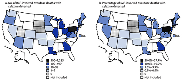 - Kariisa M, O’Donnell J, Kumar S, et al. Illicitly manufactured fentanyl-involved overdose deaths with detected xylazine – United States, January 2019-June 2022. MMWR Morb Mortal Wkly Rep 2023;72:721-727.