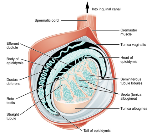 Source: Openstax. OpenStax AnatPhys fig.27.4 — anatomy of the testis — English labels. https://assets.openstax.org/oscms-prodcms/media/documents/Anatomy_and_Physiology_2e_-_WEB_c9nD9QL.pdf. CC BY 4.0. |