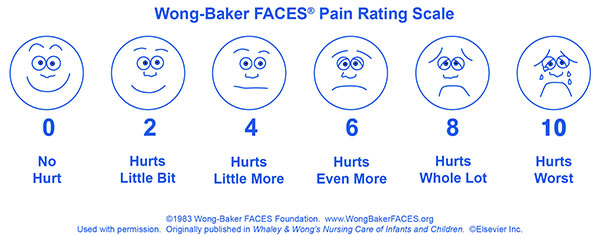 10. Garra G, Singer AJ, Taira BR, et al. Validation of the Wong-Baker FACES Pain Rating Scale in pediatric emergency department patients. Acad Emerg Med. 2010;17(1):50-54.