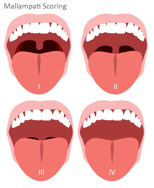 - Stutz EW, Rondeau B. Mallampati score. StatPearls [Internet]. Updated Aug. 5, 2023. https://www.ncbi.nlm.nih.gov/books/NBK585119/