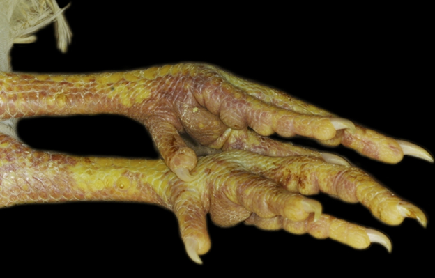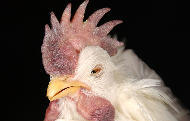 Top: Discoloration or hemorrhage of the legs. Bottom: Swelling and purple discoloration of the comb and wattle, along with eyelid edema. United States Department of Agriculture, Animal and Plant Health Inspection Service. Signs of illness. Updated June 17, 2024. https://www.aphis.usda.gov/livestock-poultry-disease/avian/defend-the-flock/signs-illness |