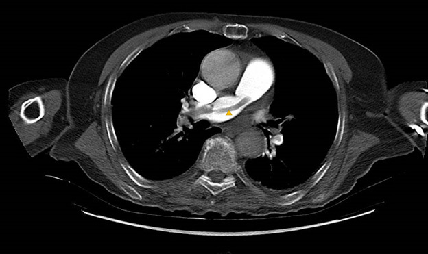 Figure 3. Axial View of a Computed Tomography Pulmonary Angiography of a Patient with Pulmonary Embolism |
