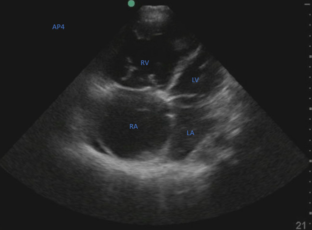 Figure 2. Cardiac Ultrasound Suspicious for Right Ventricular Dilation |