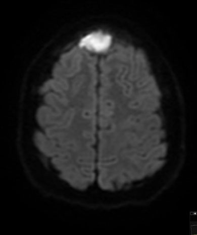 Diffusion-weighted magnetic resonance imaging of midline epidural abscess Used with permission from Mark Warren, DO, Dayton Children’s Hospital. |