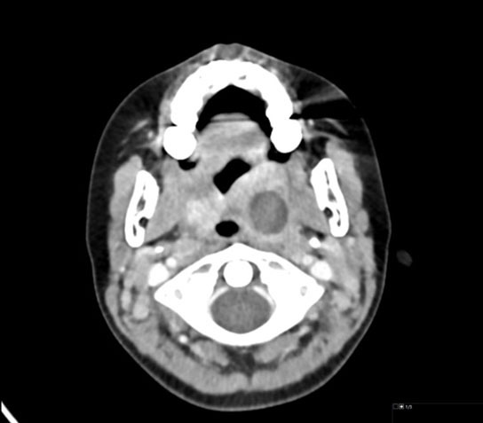 - When the diagnosis of peritonsillar abscess is obvious, a contrasted computed tomography scan typically does not add additional information and preferably could be avoided.