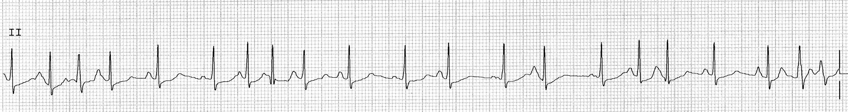 Lead II, no consistent P waves and irregular ventricular response Image courtesy of J. Stephan Stapczynski, MD |