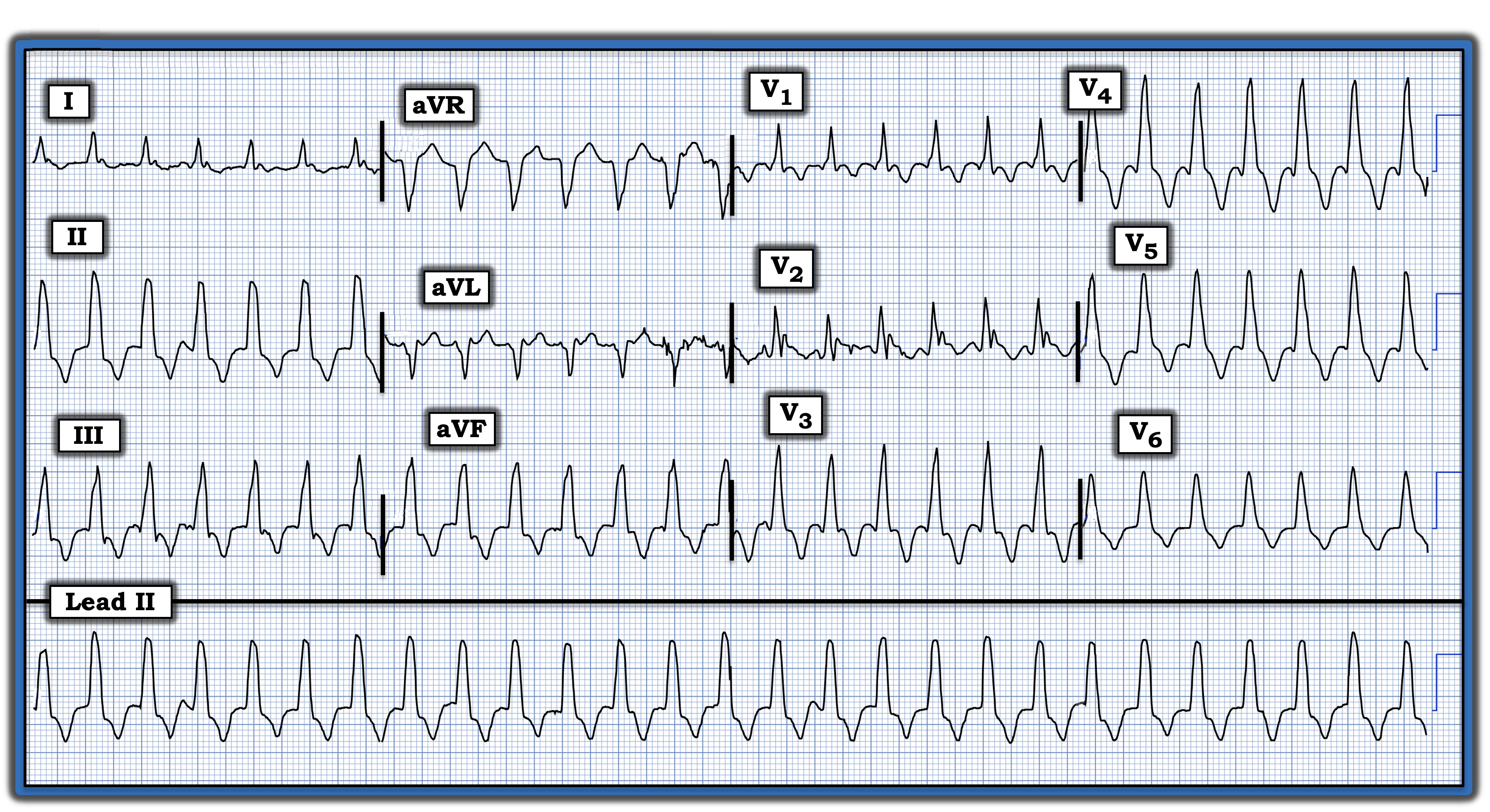 Interpretation: The “good news” is that this patient was hemodynamically stable at the time this ECG was recorded. This means that there was at least a moment of time for systematic assessment.