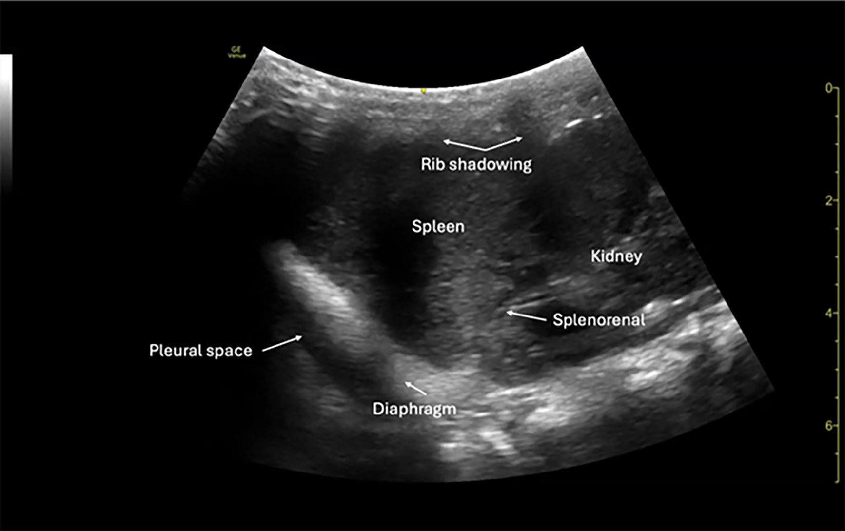 Limitations include potential false positives from perinephric fat, fluid-filled bowel, or vessels, and false negatives in patients scanned too early after injury or with isolated pelvic bleeding. Serial FAST exams and clinical correlation remain essential, especially in equivocal cases. (See Figure 1.)