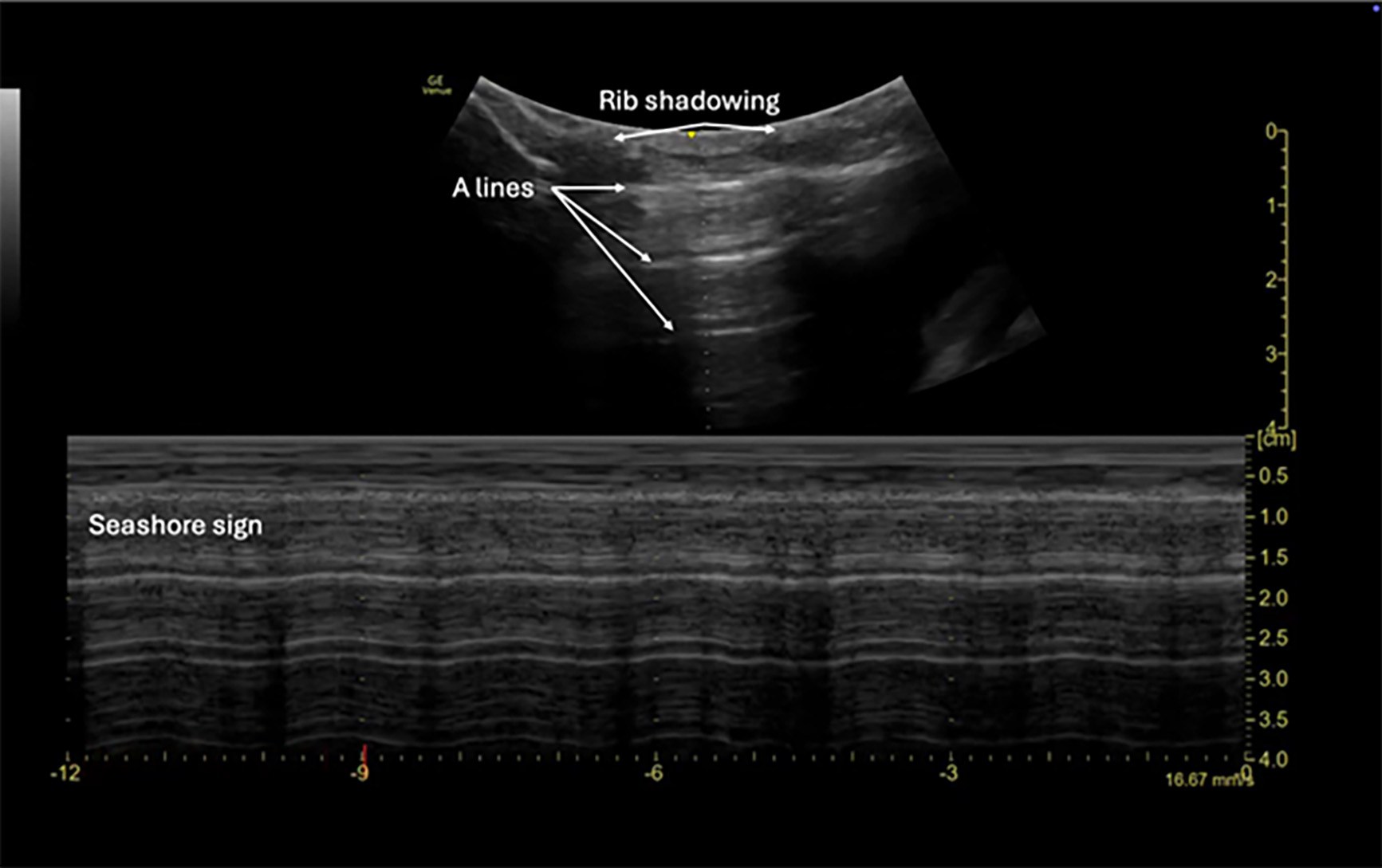 While lung sliding rules out pneumothorax in the scanned region, its absence is not specific and also may be seen in mainstem intubation, pleural adhesions, or apnea. To improve diagnostic accuracy, additional findings, such as the presence or absence of B-lines (comet tail artifacts) and the lung point (transition between sliding and non-sliding pleura), should be assessed since detection of the lung point is highly specific for pneumothorax.45