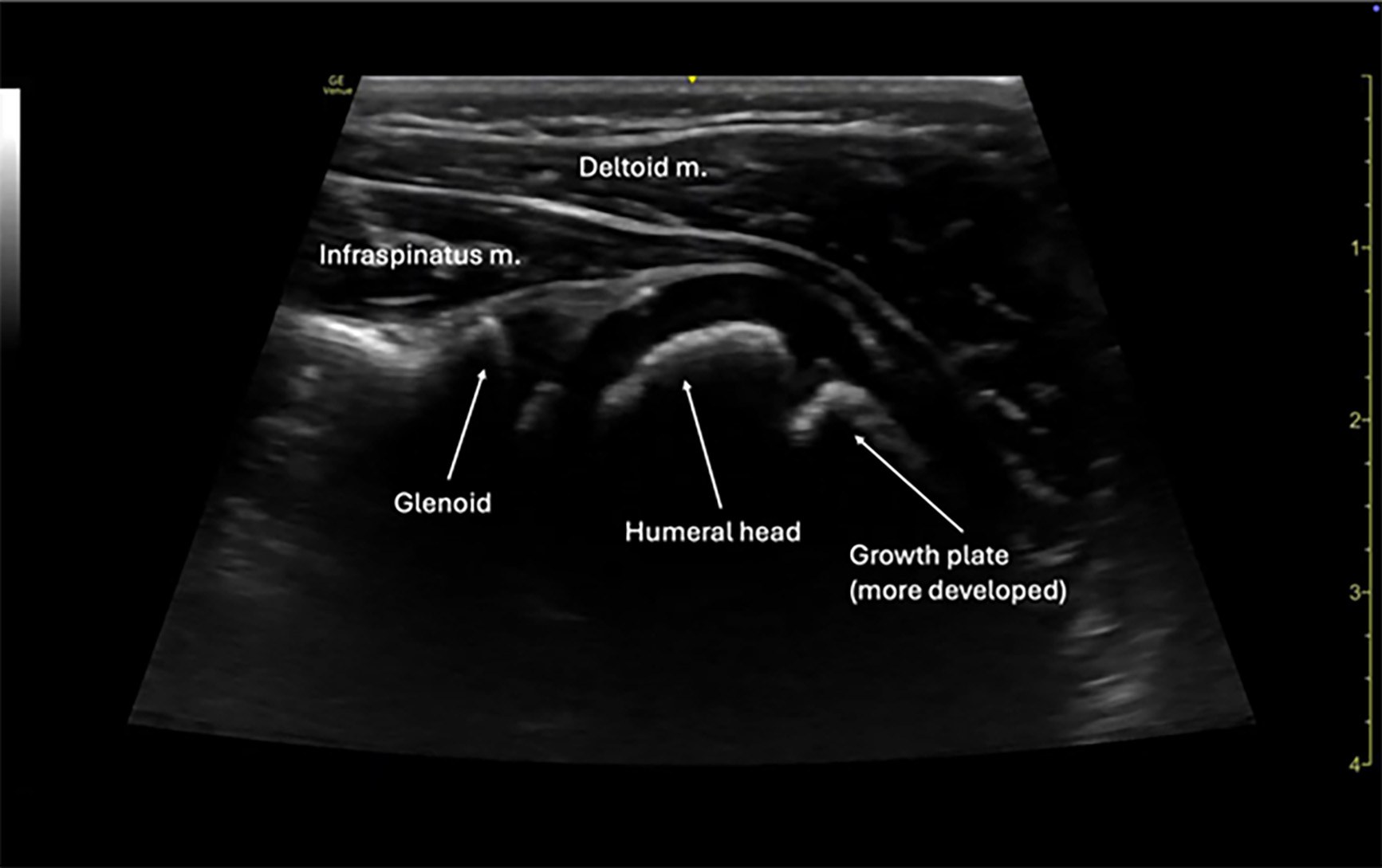 Ultrasound can effectively identify glenohumeral dislocations and subtle fractures in the pediatric population. Identification of shoulder dislocations was associated with a sensitivity of 99.1% and specificity of 99.2% when performed by trained providers or technicians.51 Regarding fractures, ultrasound is particularly useful for detecting cortical disruption of the humeral head or clavicle, although its sensitivity for subtle or intra-articular fractures may be lower compared to radiography depending on the interpreting provider.52